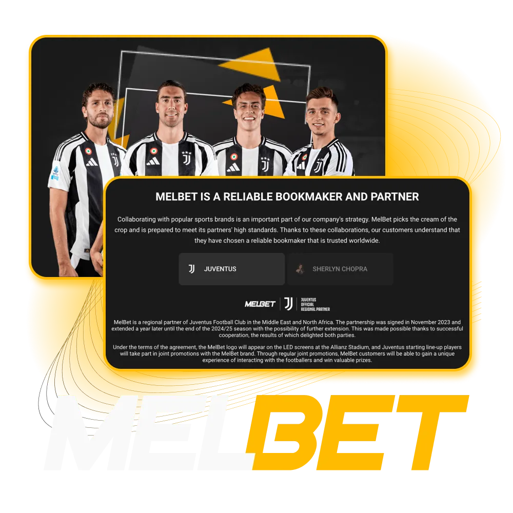 Melbet became a regional partner of Juventus in the MENA region in late 2023. The collaboration was renewed for the 2024/25 season after showing good results for both sides.